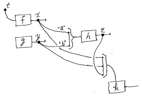 「お絵描き圏論とCatyScriptの変数など」において、データフロー・ベースの(より正確にはデカルト圏ベースの)プログラミングでは変数なんて要らないのだ、という話をしました。しかし現実には、変数なしプログラミングは辛い、とも言いました。このへんの…