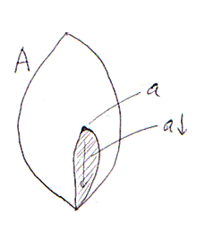つまり、xがXに属するなら、xより小さい元(メンバー)はすべてXに属するわけ。下方閉(lower closed; down closed)という形容詞のほうが感じが出るかもしれません。下側のほうにはズーッと広がっている、可能な限り下側に広がっている集合です。空集合とA自身も下方集合になります。