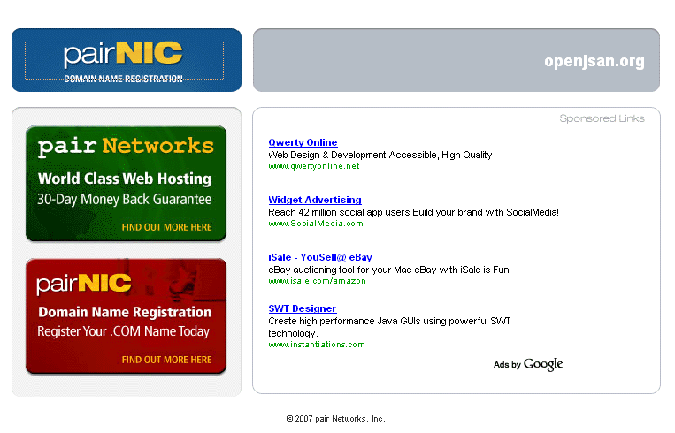 ドメイン名openjsan.orgは、pairNICというドメイン名登録会社の管理下になっているようです。