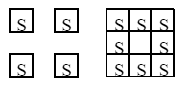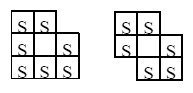 実は、「面積 = 内部点の個数 + 周囲の長さ/2 - 1」という公式は、単純な領域に対してしか成立しません。複数の“島”からなる領域や穴があいた(島に“湖”がある)領域では破綻<はたん>します。次の例で確かめてみてください。(Sと書いてないところはタイルがありません。)