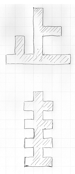まず、大前提として、タイルは方眼紙の升目に合わせて置くことにします。次のようなズレた置き方はダメです。