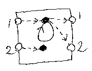 この単純なモデルであるホッピングボール・マシンは、プログラム意味論はもとより、圏論、論理、グラフ理論などの立場からも興味深い素材で、この素材を使って次のようなことを説明できます。