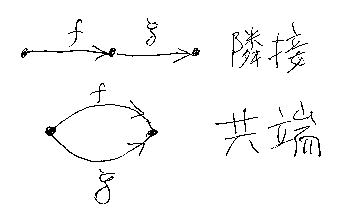 - f, g∈C(1) が、cod(f) = dom(g) のとき、fとgは隣接しているという。