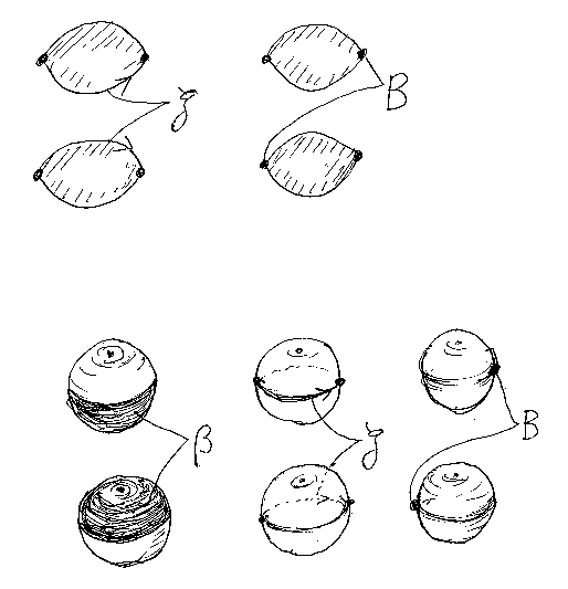 ところが、バタニン(Michael Batanin)が面白い図形を使うことを思いつきました。この図形は多面体なんですが、各次元ごとの構成要素の形状は一種類、個数は常に2個なのです。3次元の場合で言えば: