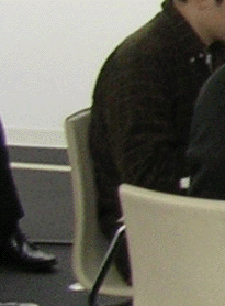 ご覧の通り、十ニ,三人まではテーブルに座れます。実は、この写真の範囲外にまだ何人かいます。よく見ると、左端に足だけ見えているでしょ(下に一部拡大)。