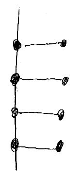 Z→R という包含写像を図示すると、整数から実数に向かう矢印を描くことになります。グロタンディーク構成では逆に、実数から整数に向かう矢印が描かれます。どっちでも通用するように矢印の方向を省略すると、次の図のような、連続直線から横向きの枝が何本も出た図形になります。