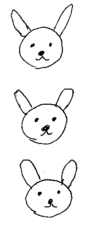以下のウサギの絵ですけど、耳を短い線分、顔を円にしてしまうと、ウサギは「枝が出たマル」の図形とみなせます。