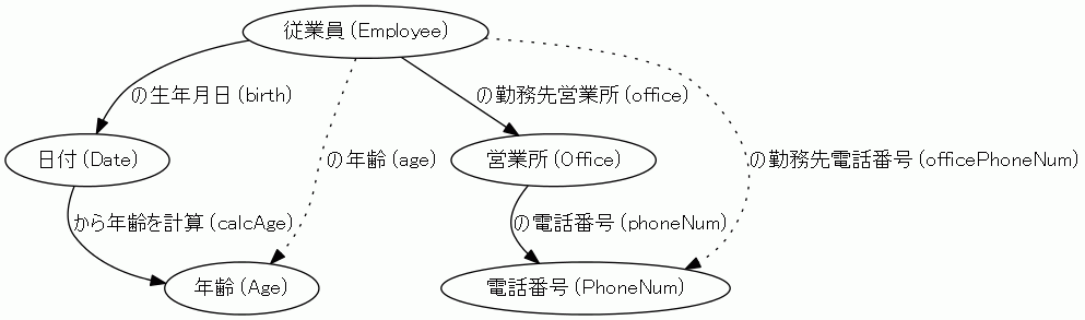 と定義しています。これにより、写像ageとofficePhoneNumは基本的な写像からは除外されます。除外された写像は点線で描いています。
