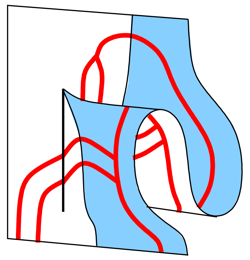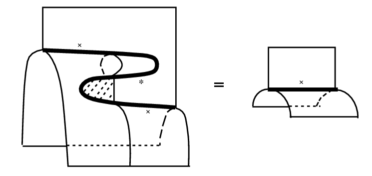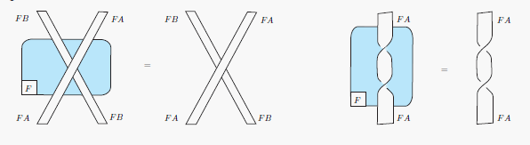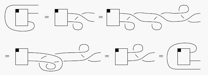 日付は July 20, 2006 となってます。こちらは、ブレイドやひねりも扱っているのでリボンを使った絵です。44ページの論説に色付きの綺麗な絵がたくさん載ってます。同じ(あるいは類似の)話題のスライドも公開されています("Functorial boxes" で検索すれば見つかるでしょう)。2008年8月の n-Category Cafeの記事 "Melliès on Functorial Boxes" でも言及されていますが、スライドのほうに関してですね。