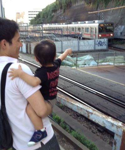 下の写真のお父さんは僕ではありませんが、何年か前は、この親子のように電車を見ていたよなー、と。ときは流れますなぁ。