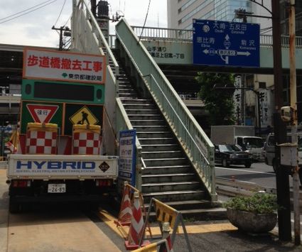 この歩道橋がなくなっても、僕は特に不便を感じません。が、ちょっと寂しい気はします。子供たち(特に長男)はこの歩道橋の上から、中目黒駅を通る電車をよく眺めていました。ある時期、子供たちはほんとに電車好きでしたからね。