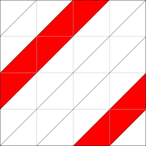 以下は、{φ∈S | π/2 ≦ φ < π} に対応する斜め帯の図です。これは、{(θ1, θ2)∈S×S | π/2 ≦ θ2 - θ1 < π} により定義されるトーラス上の領域(の展開図)です。
