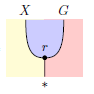 Gが圏Cから集合圏Setへの関手のとき、r∈G(X) をマースデンは次のように図示しています。