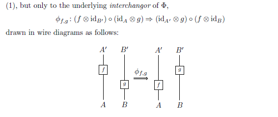 *1:バエズ/ラングフォード〈John C. Baez and Laurel Langford〉は "2-Tangles"( https://arxiv.org/pdf/q-alg/9703033.pdf)のp.3において、interchangorをtensorator〈テンソレイター〉と呼んでいます。