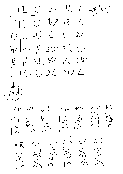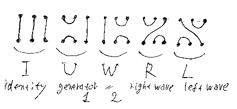 線形表現Fを露骨に書き下すために、もう少し記号の約束をします: キャップ形、カップ形のカウフマン図を∩、∪で表します。∩:0→2, ∪:2→0 in Kaufδ です。カウフマン圏Kaufδはテンパリー/リーブ圏TLδに埋め込めるので、∩:0→2, ∪:2→0 in TLδ ともみなせます。