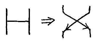 横棒の部分を次のように交差に置き換えると、ブレイド図と似た図形になります。