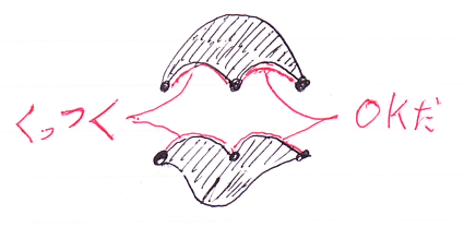 曲がったハイブなら柔軟性・自由度が高いので、Daftogの結合を幾何的に実現できます。