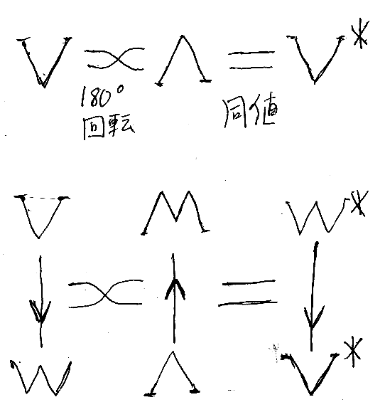 「コンパクト閉圏と絵算で理解する線形代数とシーケント計算(入り口だけ)」でも、文字自体を180度回転して双対を表現しました。