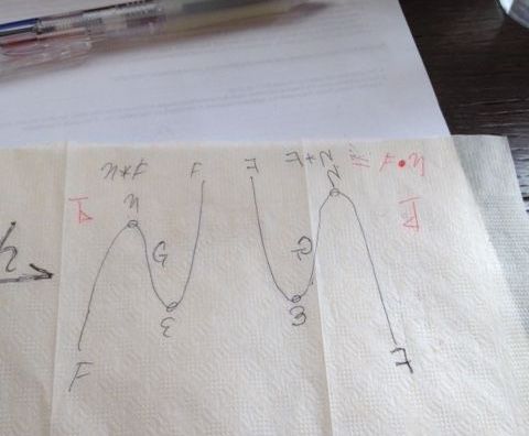 最初に言っておくと、これはマジな話です。ジョーダンやネタじゃないです。絵やテキストにおける、上下左右のひっくり返し/裏返しに慣れないと、双対や随伴の理解は困難です。いやっ、ホントに。