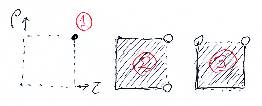 (τ, ρ) = (1, 1) の場合とそれ以外です。それ以外をさらに2つに分けて: