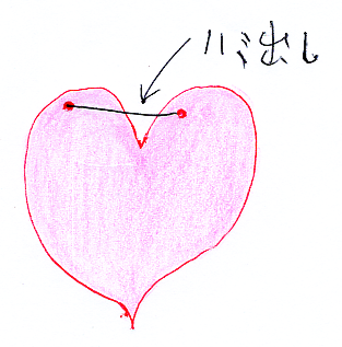 ハート形は凸集合ではありません。次の図のように、両端がハート形に入っているのに、ハート形からはみ出す線分が存在するからです。