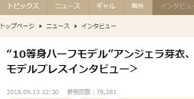 モデルのアンジェラ芽衣の謳い文句は「10等身ハーフモデル」。