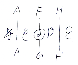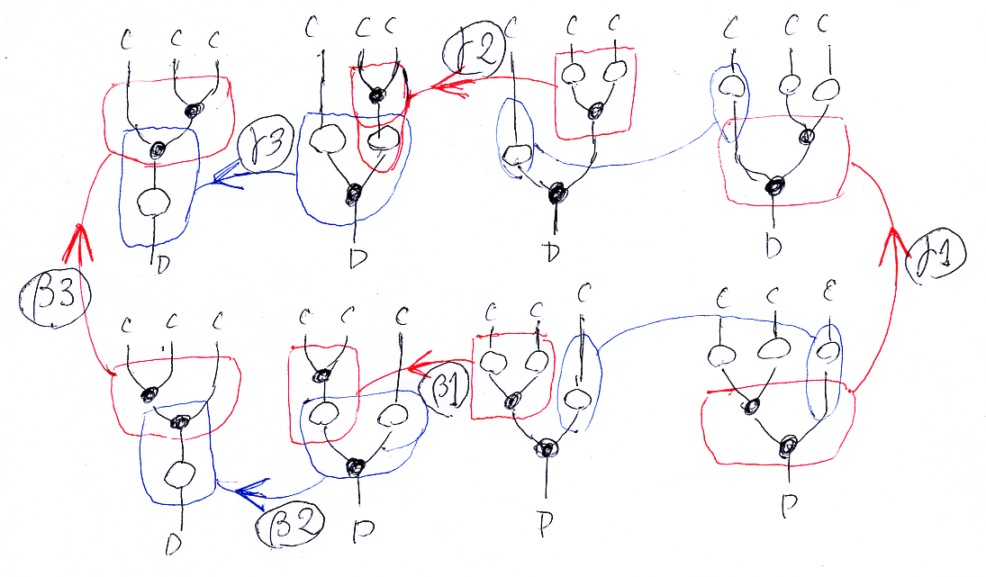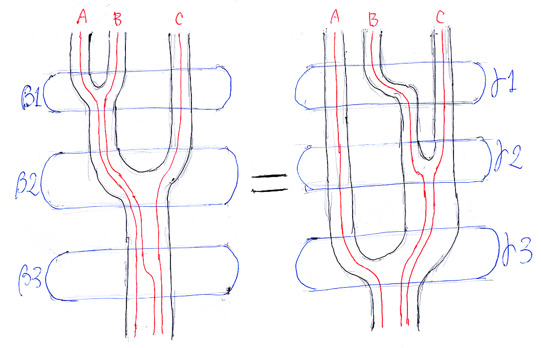 例えば、ストリング図書き換えの下段4番の図は、ストライプ図等式左辺の最上部パーツに対応します(次の図)。