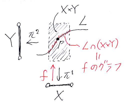 部分多様体Z(あるいはもとになった L⊆M×N)を陰関数〈implicit function〉と呼び、f:X→Y を対応する陽関数〈explicit function〉といいます。ここでの陽関数は、非決定性写像ではなくて、決定性写像です。