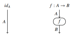 恒等射と一般の射はワイヤーとノードで描きます。