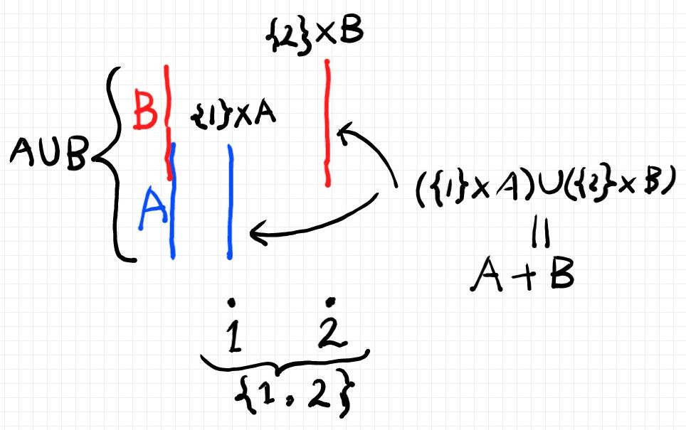 集合の直和 A + B はこのように定義されるのでした(下図も参照)。