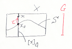 x∈X に対して X∩[x] = {x0} とします。x x0 は一意に決まるので、X → S という写像が定まります。x0 に適当なGの元 τ を作用させて x を得るので、