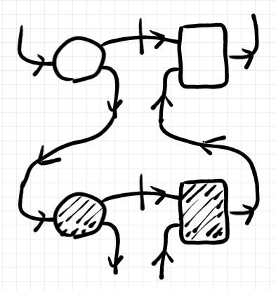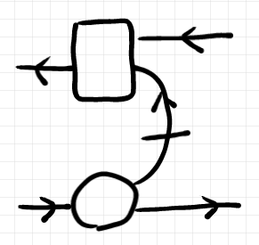 この描画法では、順行パートの方向は左から右でもあり、上から下でもあります。順行パートのモノイド積の順番は上から下で時計回り規約になっています。逆行パートは左から右/下から上で、モノイド積の順番は上から下で同じく時計回り規約になっています。