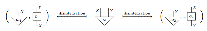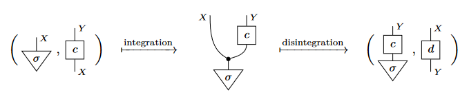 つまり、disintegration は条件化とベイズ反転を包摂したより一般的な概念なわけです。