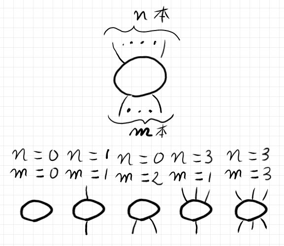 まず、複圏〈multicategory〉、余複圏〈comaulticategory〉、多圏〈polycategory〉についてすごく大雑把に説明します。n, m は任意の自然数(0 も許す)とします。