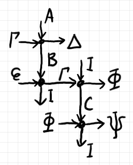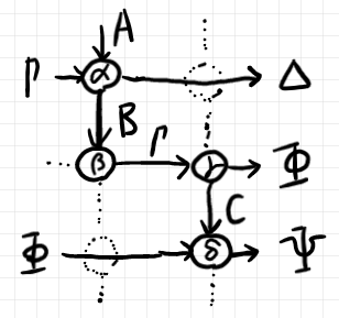 - (3, 2) : $`\delta :: \Phi \dblto{C}{I} \Psi`$