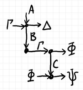 :: \Gamma\conc \varepsilon\conc \Phi \dblto{A\otimes I}{I\otimes I} \Delta\conc \Phi\conc \Psi