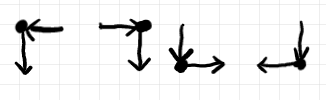 - $`\cat{C}`$ の対象 $`A`$ に対して、以下の種類のグリッド図のノードがある。このタイプのノードをコーナー・ノード〈corner node〉と呼ぶことにします。