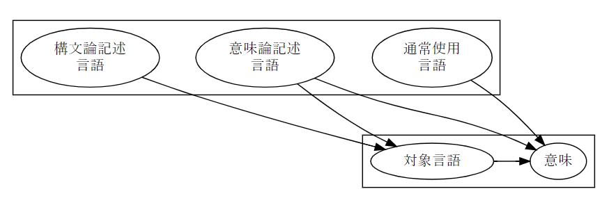構文論と意味論を語る道具である言語達を図示すると次のようになるでしょう*2。