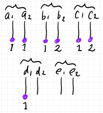 $`\quad \pi(a_1) = a = \{a_1, a_2\}\\