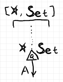 集合の要素 $`a\in A`$ があるとき、要素はポインティング射〈ポインティング写像〉とみなせます。