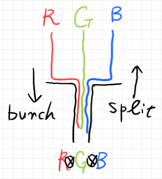 \quad (R\otimes G\otimes B) \to (R, B, B)