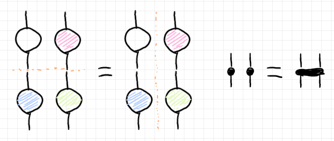 $`\quad (f \otimes h);(g \otimes k ) = (f ; g) \otimes (h ; k)\\