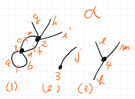 - 半グラフはギリシャ文字小文字でラベルする。上の例では α 。