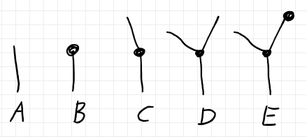 - 辺の集合(頂点の集合ではない)を台としたツリー順序集合 $`(E, \le, r)`$ がある。ルート辺 $`r`$ は外部辺(無頂点辺でもよい)である。