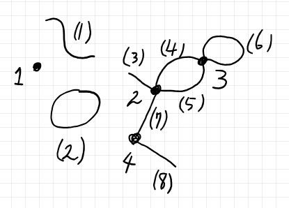 このなかで、(1) が例外辺、(2) が例外ループです。この例では、$`n = 1, m = 7, k = 4`$ です。