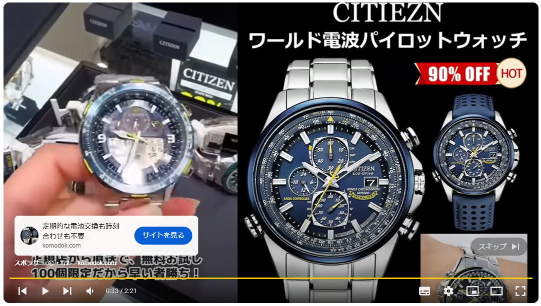 YouTubeのとある広告でタイトルのごとく言っているように聞こえる。が、商品のWebサイトには「ロレックスの時計」だとは一言も書いてない。広告内でアナウンスしている文言は次のよう。