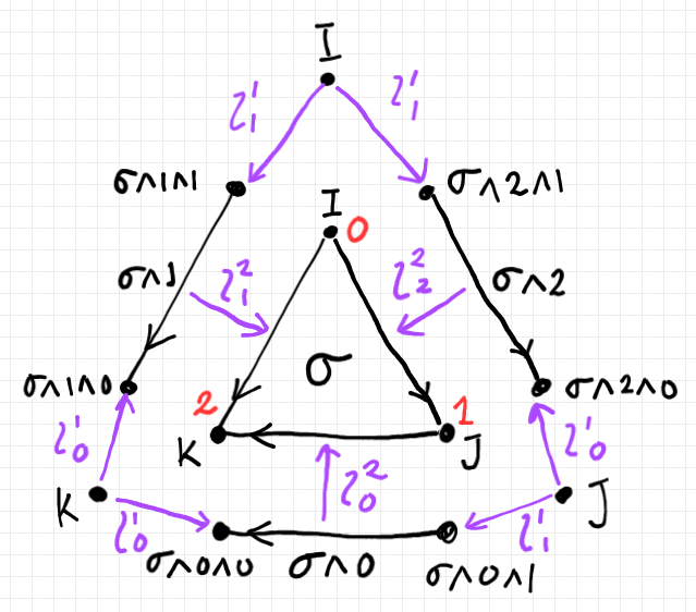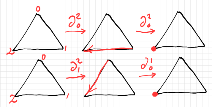 この等式は単体恒等式〈simplicial identities〉の一部です。以下、上記関係式は単体条件〈simplicial condition〉として参照します。
