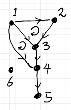 便宜上の向き付けで一番簡単で便利な方法は、0-セル〈頂点〉の集合 $`V = V_G`$ に全順序を入れてしまうことです。我々の具体例では、$`V = \{1, 2, 3, 4, 5, 6\}`$ なので、自然数の順序としての全順序が既に入っています。つまり、頂点達に番号をふれば、それだけで向き付けが出来るのです。